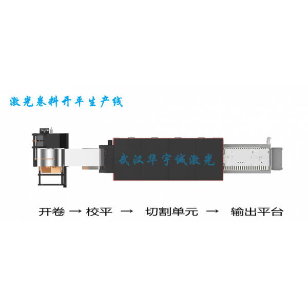 動(dòng)態(tài)高精高速全自動(dòng)激光開(kāi)卷落料生產(chǎn)線,采用激光切割技術(shù)的開(kāi)卷落料生產(chǎn)設(shè)備,由上料臺(tái)車、開(kāi)卷機(jī)、校平機(jī)、伺服送料機(jī)、激光切割裝置、切割平臺(tái)、碼垛裝置、廢料處理系統(tǒng)、液壓氣動(dòng)系統(tǒng)及電氣控制系統(tǒng)組成。